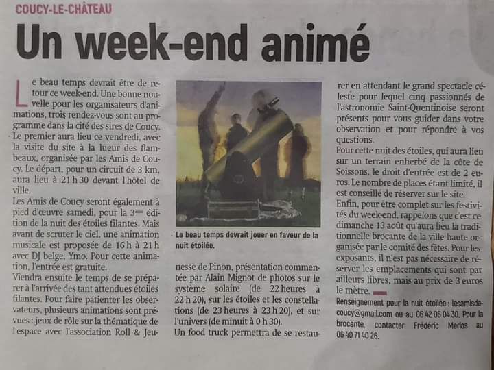Contact et renseignements par mail 👇 lesamisdecoucy@gmail.com